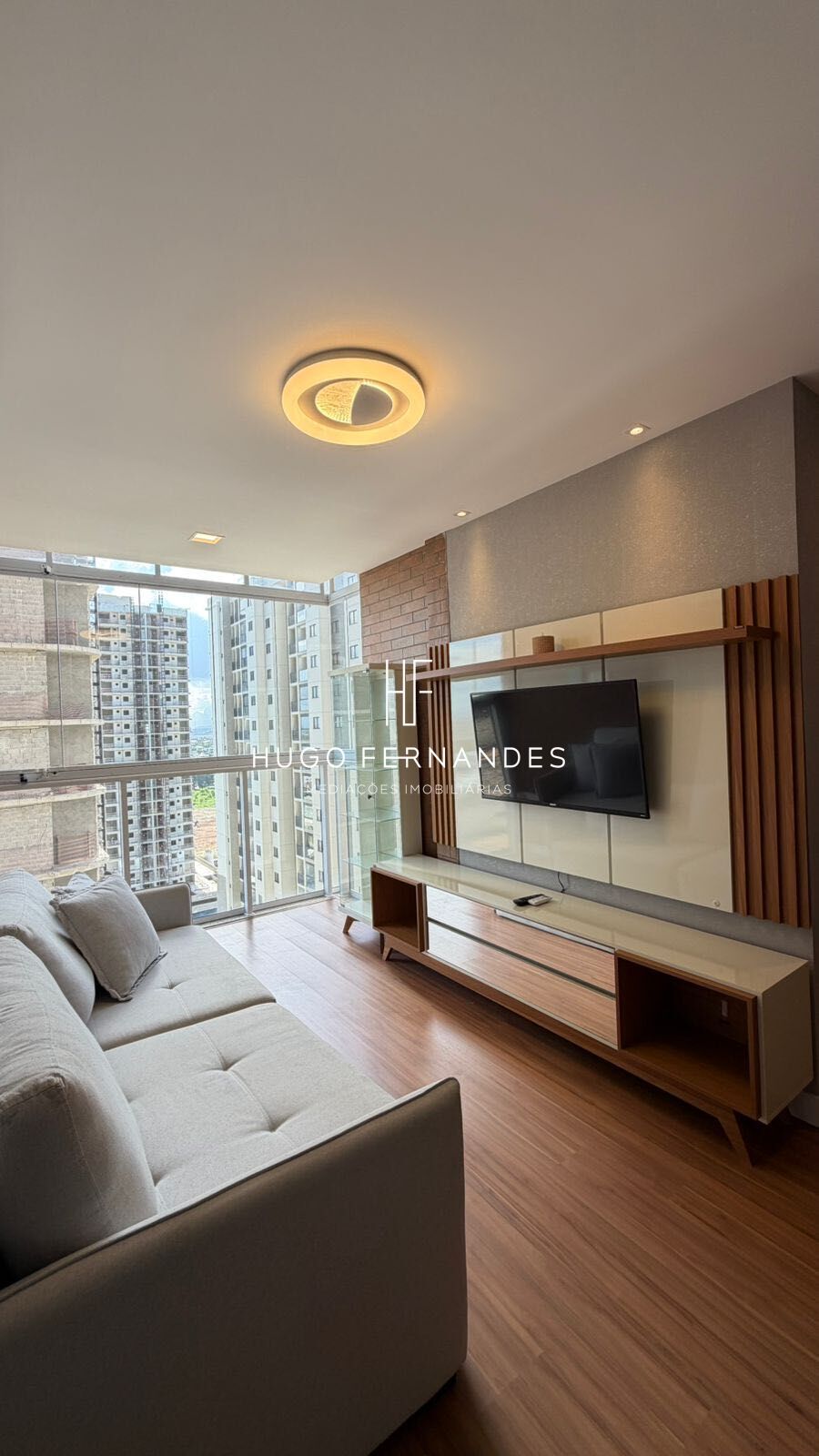 Apartamento 2 quartos sendo 01 suíte , sala integrada a varanda com fechamento em vidro, banheiro social, cozinha com área de serviço.